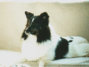 この場合の白は何ら問題になるような遺伝的欠陥を持つことはないとされていますが、スタンダードによれば、シェルティーの場合は、牧羊犬のため、羊と見分けがつきにくいので、体表の50%を超える白は大きく減点することになっています。しかし、私にはこの理由は理解しにくいことのひとつです。実際スタンダードに書かれた体表面積の50%以上という面積はボディの部分だけに限られていないと考えるならかなり多くのシェルティーがカラーヘッドになってしまうでしょうから・・・考えようによってはボディーの部分と解釈するのが妥当かもしれません・・・。